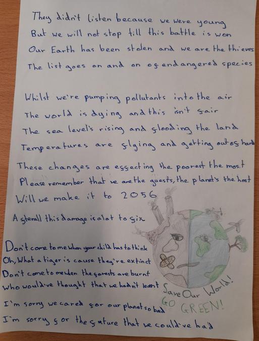 Years 5-6: pupils have been learning about the climate crisis and climate justice. They have been responding to what they have learnt by taking part in the Christian Aid Letters for Creation initiative.